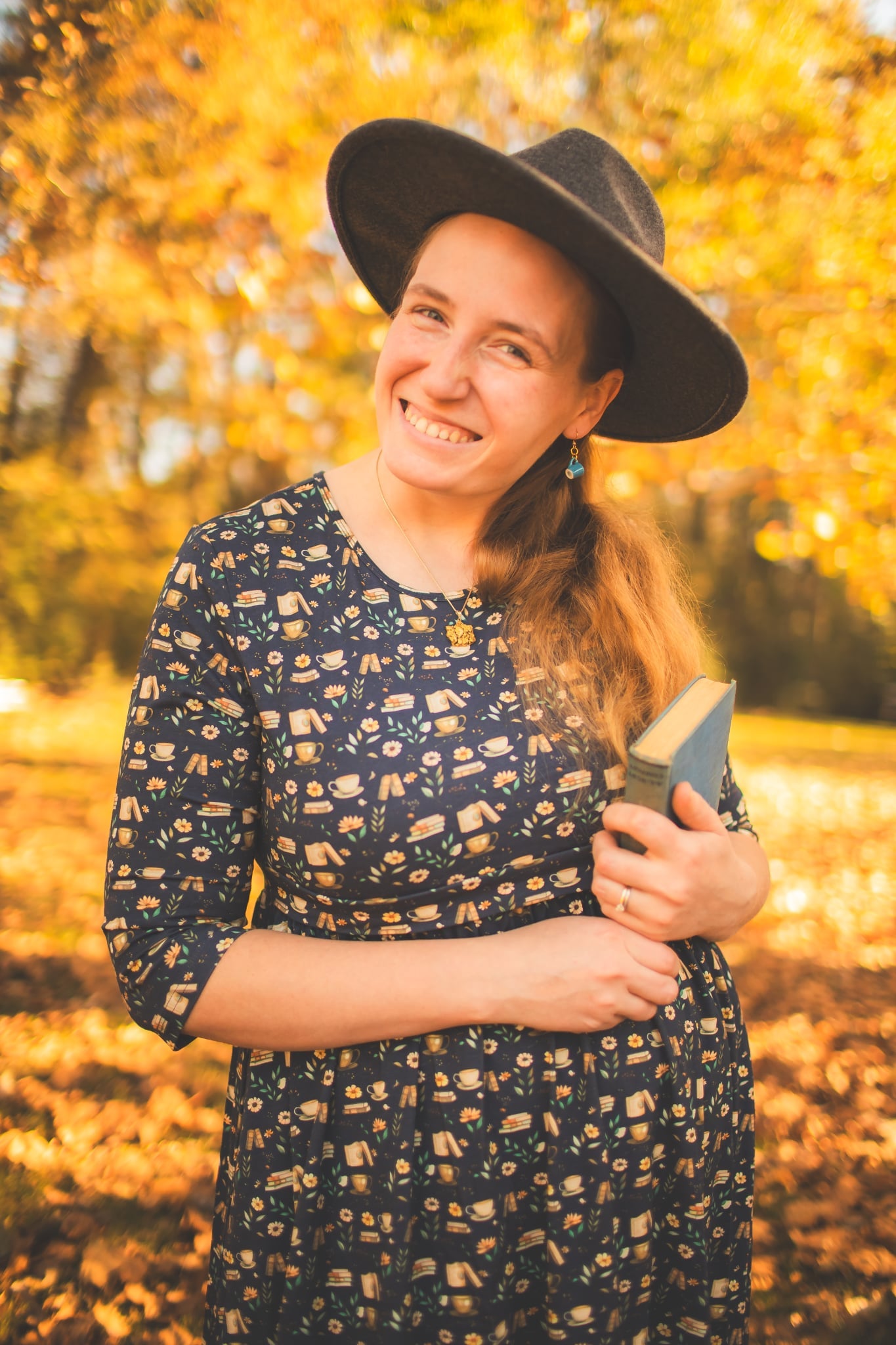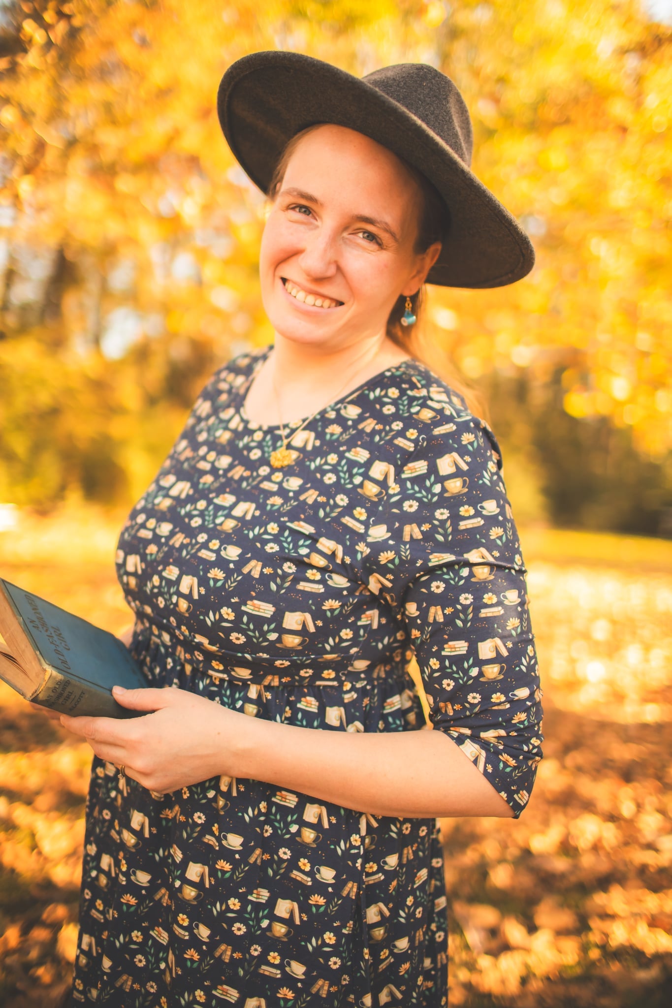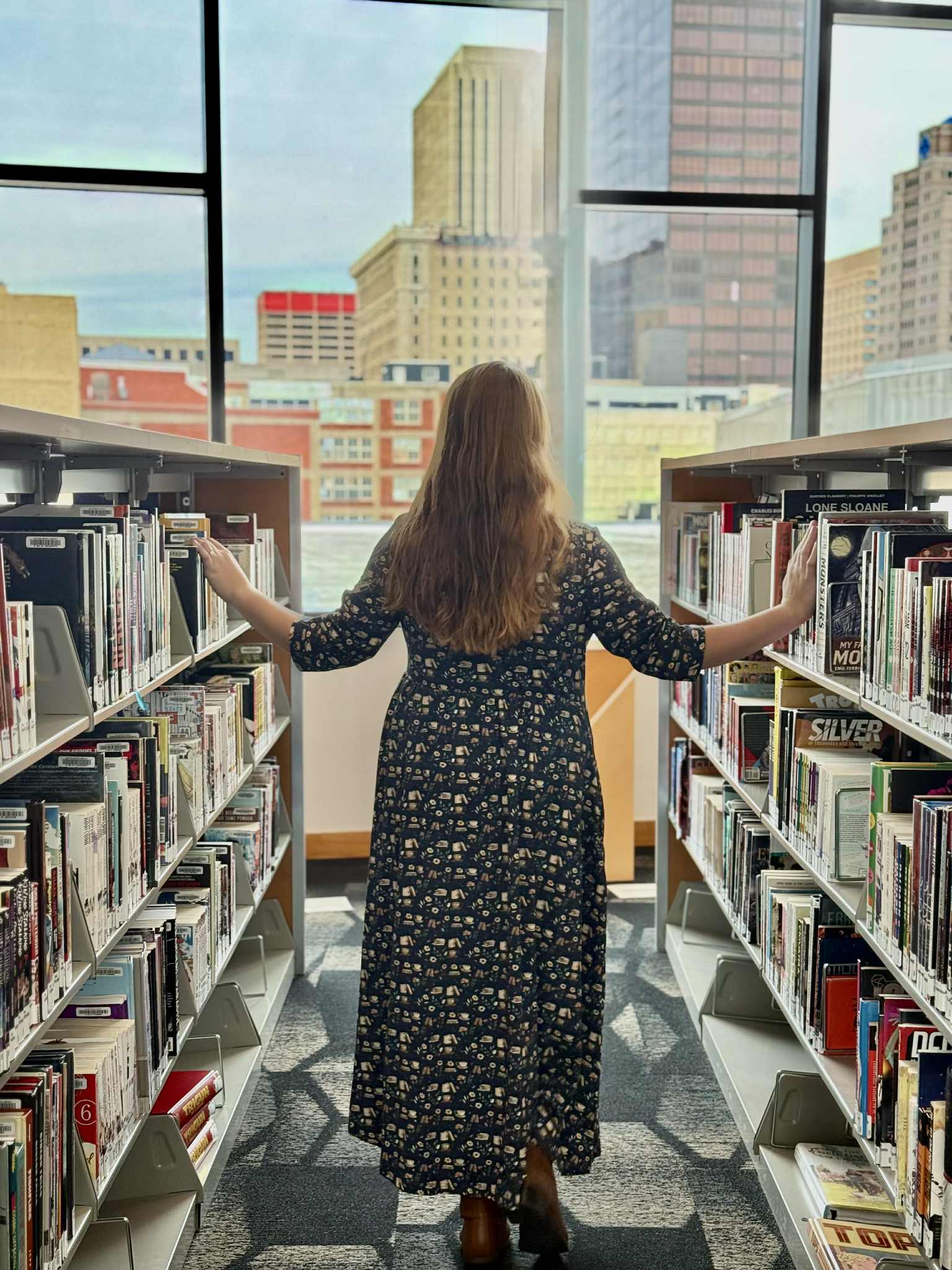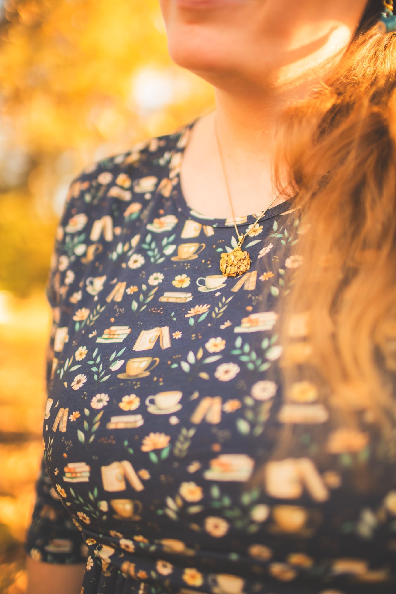 Blue Cotton "Novella" Book Print Homestead Nursing Friendly Dress