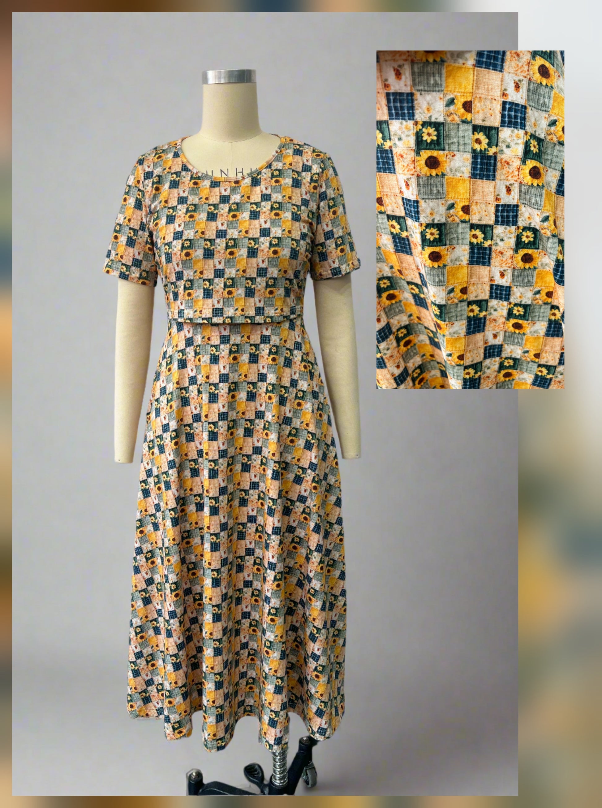 Cotton Sunflower Patchwork Nursing Friendly Twirl Dress